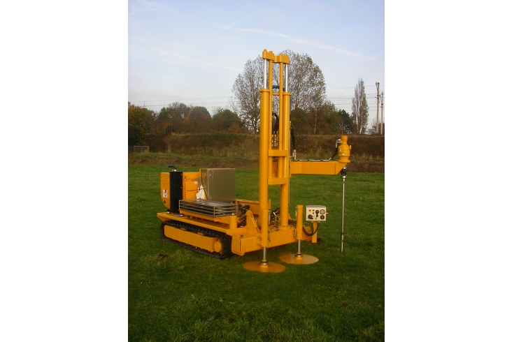 A hydraulic control unit, mounted on a console near the penetrometer pusher, allows the operator to control all functions. This console can be taken of the pusher frame for easy transport and handling. The unit comes complete with a guiding tubes, to be applied between the penetrometer and ground level.