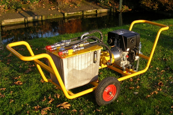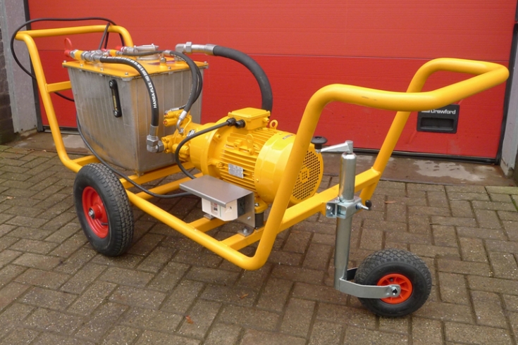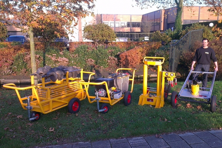 The stand-alone CPT penetrometer pusher set composes of a 200 kN penetrometer pusher featuring 2 hydraulic cylinders with manually operated valves, a diesel-hydraulic power-pack with a Hatz diesel engine and hydraulic pump, trolley for the transport of tubes and anchors, an hydraulic wrench and a set ground anchors.